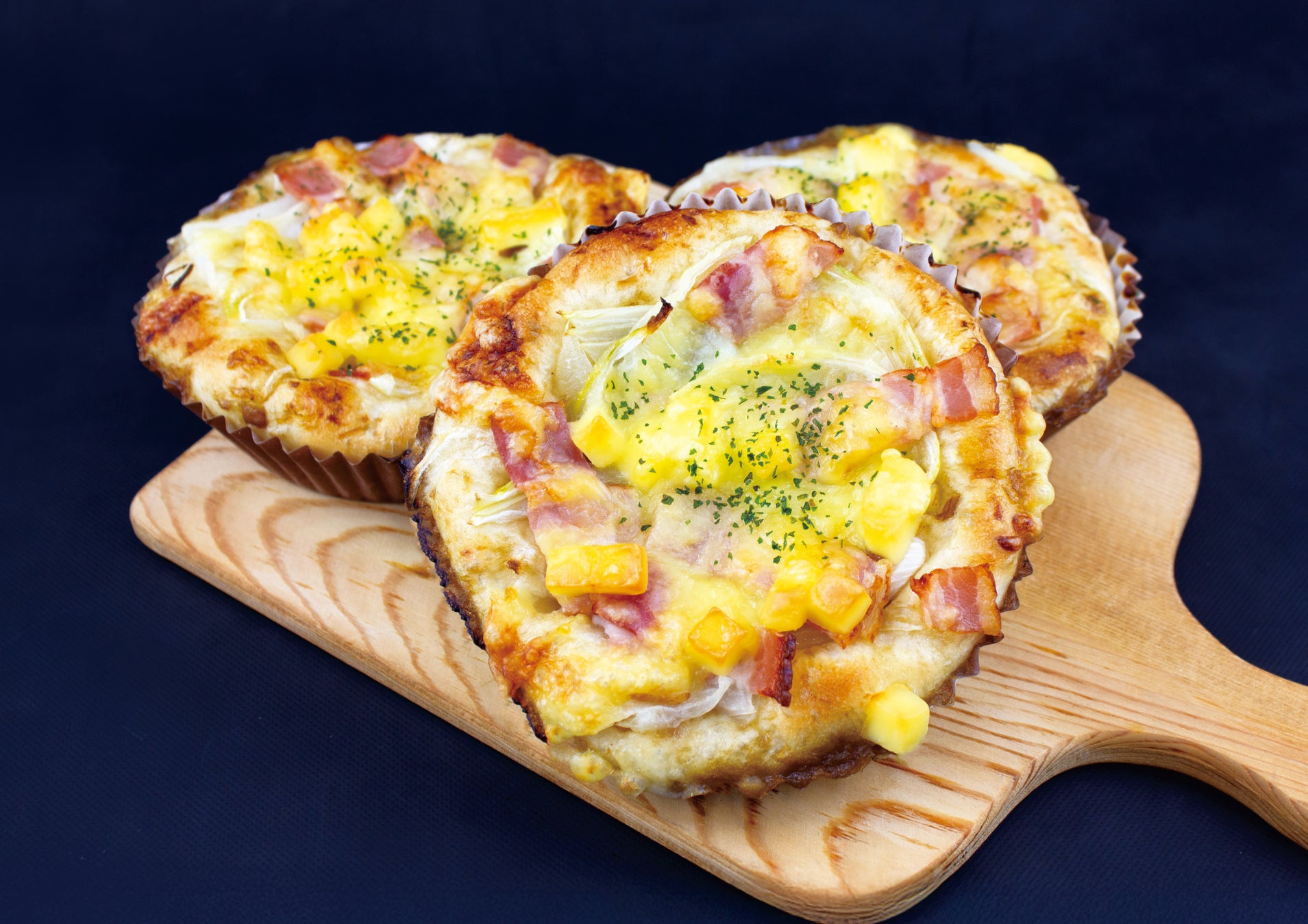 北海道産小麦を使用した生地にオニオンフィリング、ベーコン、玉ねぎ、チーズをトッピングし焼き上げました。具材たっぷりでボリューム満点!ぜひ温めてお召し上がりください。