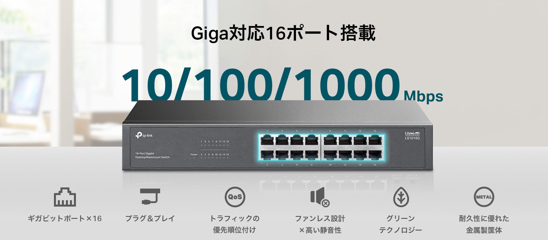 【省エネでネットワーク環境を最適化】優れた耐久性と静音性!16ポート ギガビット ラックマウントスイッチ「LS1016G」4月30日(水)発売