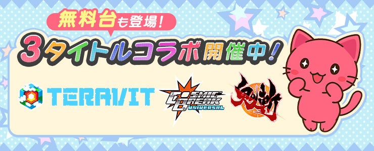 『テラビット』『CosmicBreak Universal』『鬼斬』のゲーム内で豪華アイテムがゲットできるコラボ台が登場!