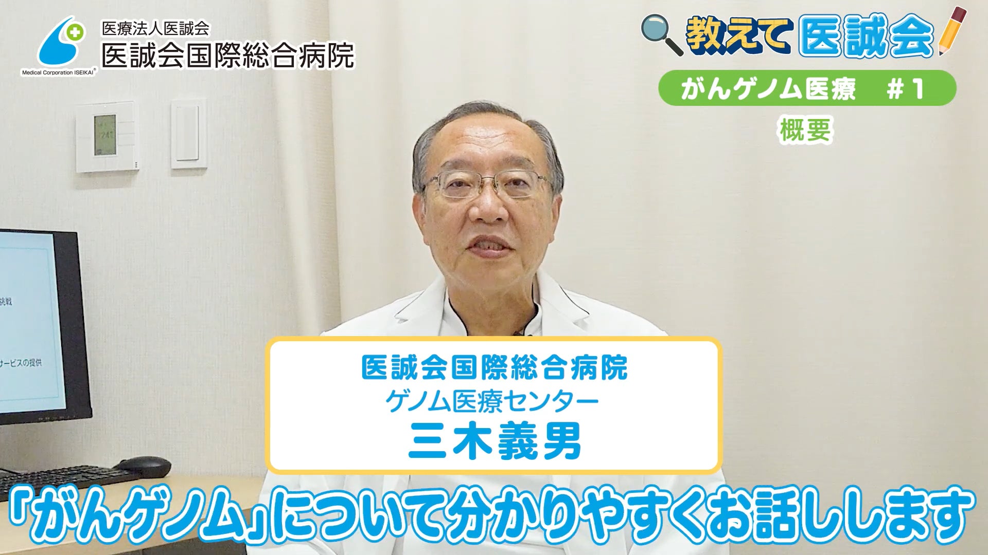 医誠会国際総合病院では、教えて医誠会という短編動画シリーズを通じ、医誠会国際総合病院 ゲノム医療センター センター長 三木 義男先生がわかりやすく解説することで一般の方々にがんゲノム医療について理解を深めてもらうことを目指しています。