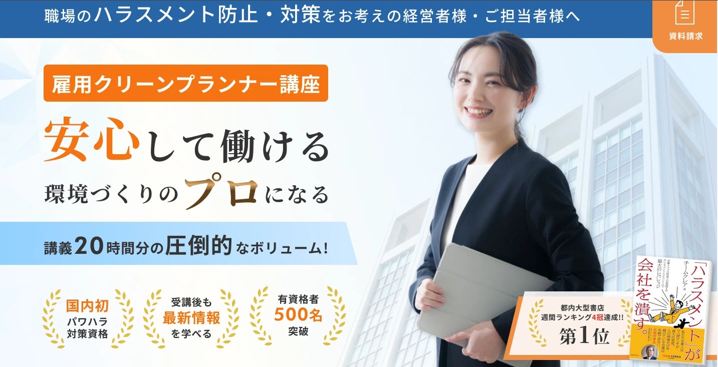 一般社団法人クレア人財育英協会は、パワハラや労働トラブルの未然予防を目指す「雇用クリーンプランナー」認定講座の新しいランディングページを公開しました。新LPは、最新の情報を提供し、安心して働ける職場作りのプロフェッショナルを目指す資格の全貌を分かりやすく伝えています。