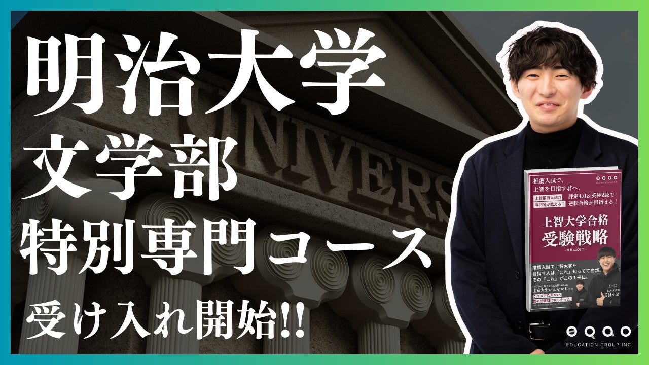 総合型選抜専門塾EQAO 明治大学文学部特別専門コース開講決定!難関大学を総合型選抜で目指す受験生を業界トップクラスのEQAOが全力サポート!明治大学文学部の対策は実績豊富な講師陣のEQAO一択!