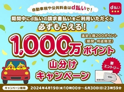 「d払い」の請求書払いをご利用いただくとdポイント1,000万ポイントを山分けするキャンペーンを開催!