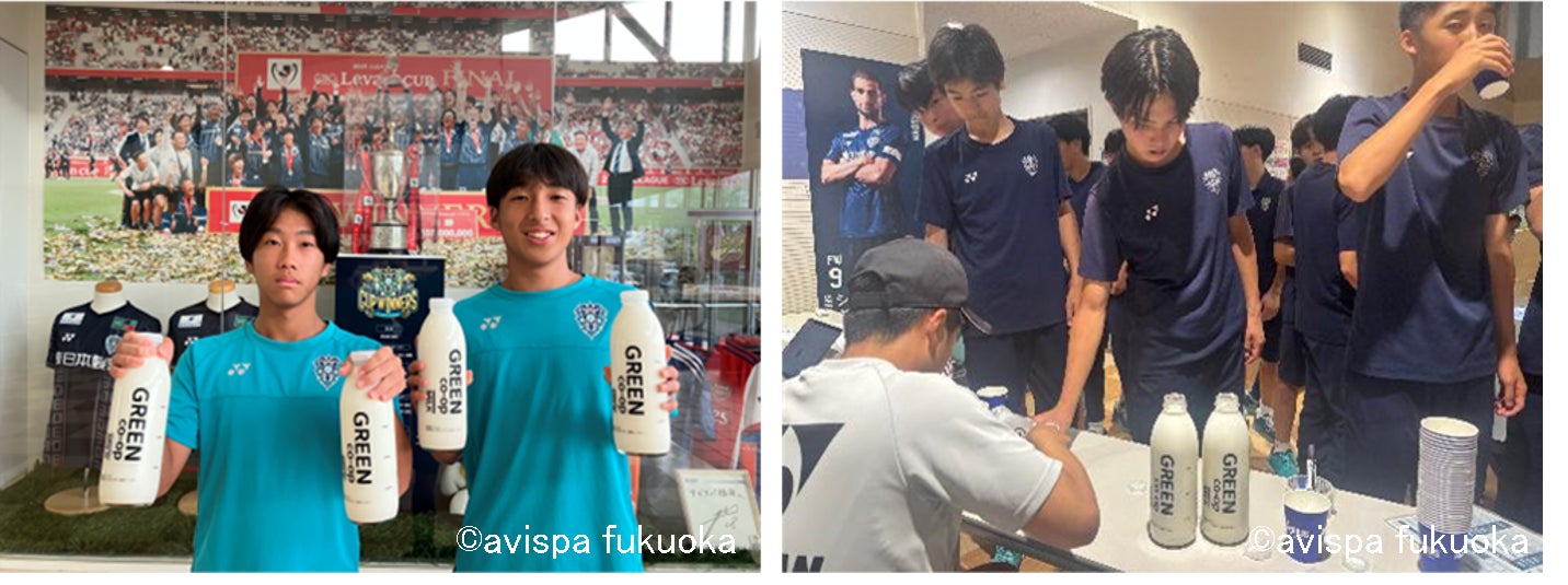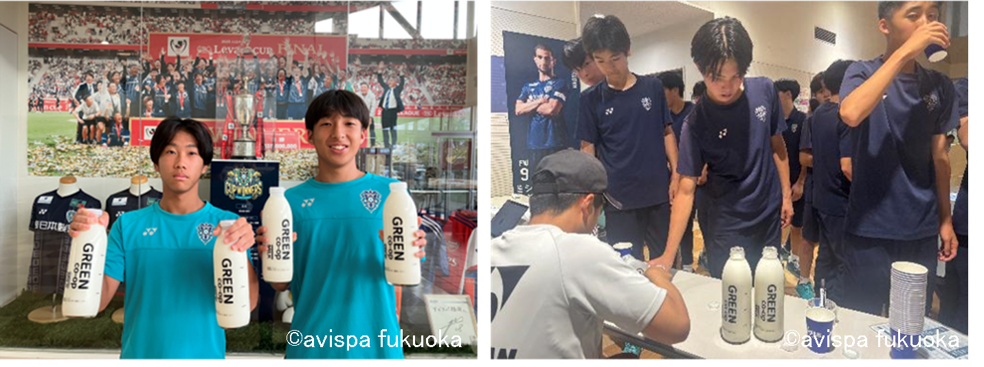 西日本を中心に16の生協で構成されている一般社団法人グリーンコープ共同体(本部:福岡市博多区、代表理事:日高 容子、以下グリーンコープ)所属のグリーンコープ生活協同組合ふくおか(以下、グリーンコープ生協ふくおか)は、Jリーグ・アビスパ福岡のアカデミー(U-18、U-15、U-12)の選手に対し、2025シーズンにおける「びん牛乳」の提供を開始しました。この取り組みは、グリーンコープ生協ふくおかが2025年のアビスパ福岡オフィシャルスポンサーを務めている縁から実現しました。地域に根ざした食を通じて、将来のトップ選手を目指す育成年代の体づくりを支援することを目的としています。