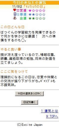 ※「性格診断」の結果や「今日の運気」をワンクリックで日記に表示