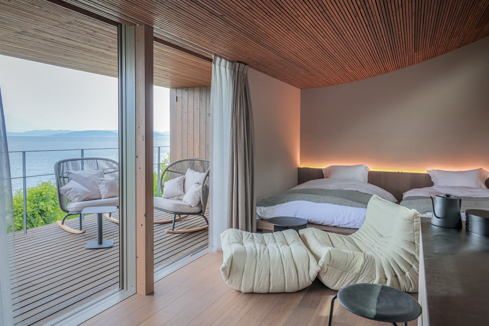 オリーブでニュートラルな心と体にととのえてもらいたい、という思いから、オリーブの“睡眠浴”でマインドフルネスを体感いただける宿泊施設「The STAY」を2024年3月15日にオープン。日々の喧騒から離れ、ニュートラルな自分に立ち戻っていただけるよう、ゆったりとした時間を過ごしながら、五感でオリーブを感じていただける施設です。