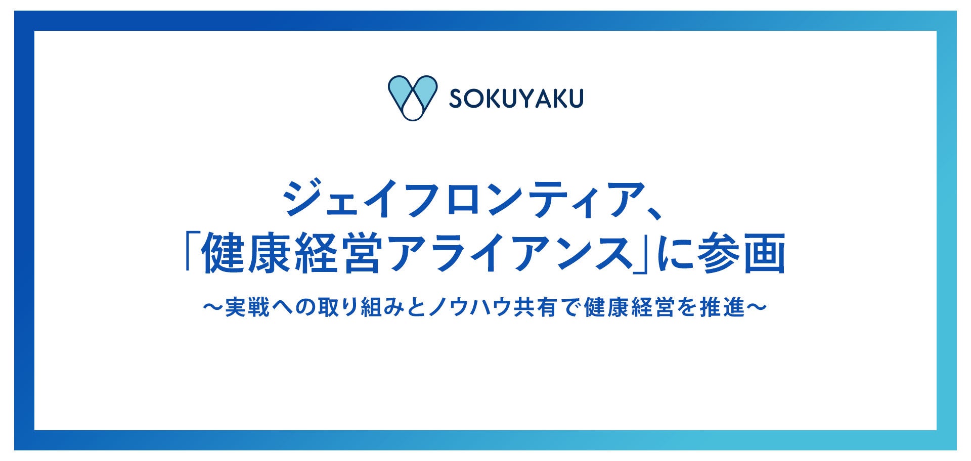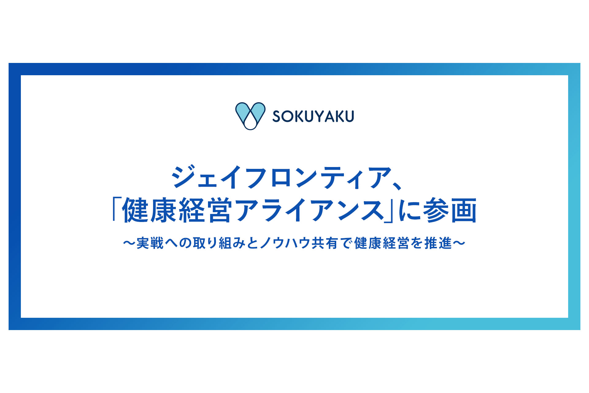 オンライン診療・服薬指導・処方薬配送サービス「SOKUYAKU」を提供するジェイフロンティア株式会社(本社:東京都渋谷区、代表取締役社長執行役員:中村篤弘、以下「ジェイフロンティア」)は、2023年6月30日に設立した健康経営アライアンス®に参画したことをお知らせいたします。