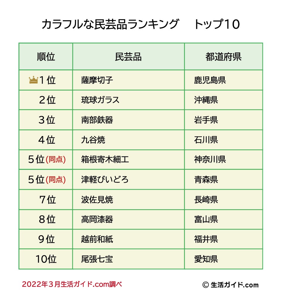 カラフルな民芸品ランキング1位は、鹿児島県の「薩摩切子」