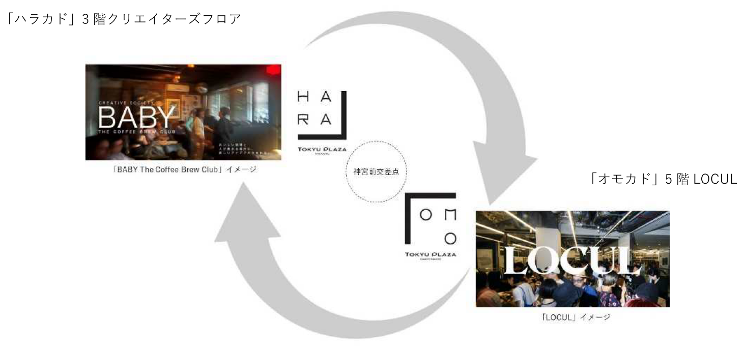 「ハラカド」3階のクリエイターズフロアは、2023年8月に「株式会社リアルゲイト」との協業で東急プラザ表参道原宿(2024年度以降「東急プラザ表参道「オモカド」」に改称予定)5階にオープンした「LOCUL」や、その他当社が展開する拠点とも連携し、原宿・神宮前エリアの持つ文化醸成力・文化発信力を復活させ、さらにこの街を舞台に世界に羽ばたく才能を継続的に生み出していきます。
