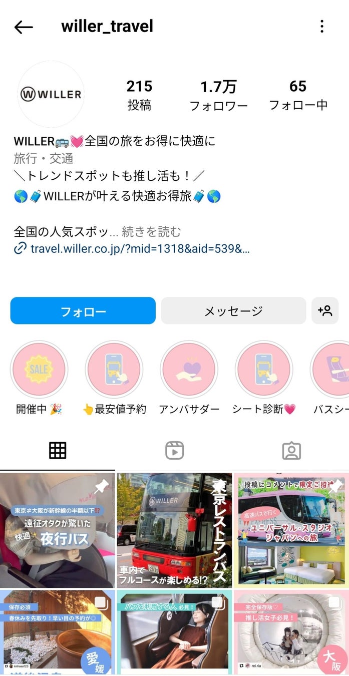 株式会社エフ・コード(本社:東京都新宿区、代表取締役社長:工藤 勉、証券コード:9211、以下「当社」)の連結子会社である株式会社SAKIYOMI(本社:大阪府大阪市北区、代表取締役:石川 侑輝、以下「SAKIYOMI(サキヨミ)」)は高速バスなどの移動・観光eコマース事業を行うWILLER MARKETING株式会社(本社:大阪市北区、インスタグラム運用代行サービスおよびチャットボットサービス「SAKIYOMIチャット」を導入いただき、運用開始3ヶ月半でフォロワー約8,000人増、インスタグラム経由での売り上げが約7倍に向上しました。