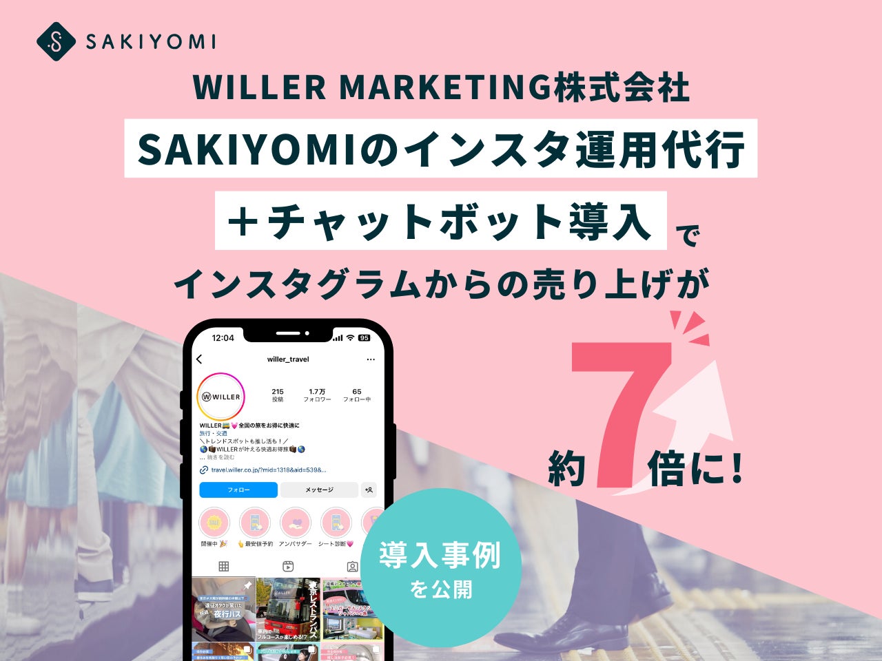 WILLER MARKETING株式会社、SAKIYOMIのインスタ運用代行+チャットボット導入でインスタグラムからの売り上げが約7倍に!