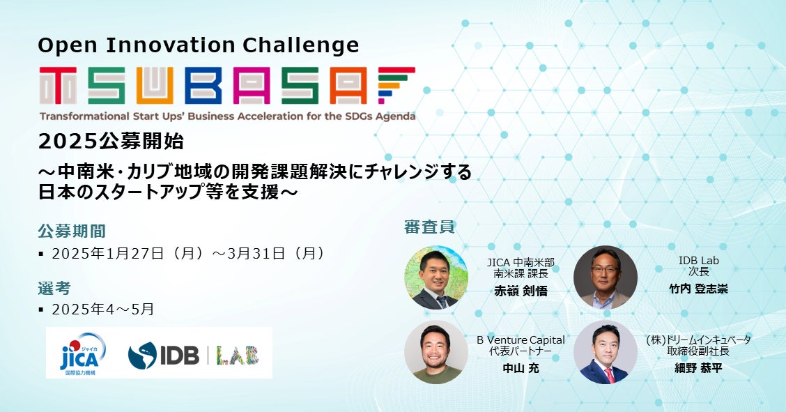 JICA・IDB Lab オープンイノベーションチャレンジTSUBASA2025公募開始