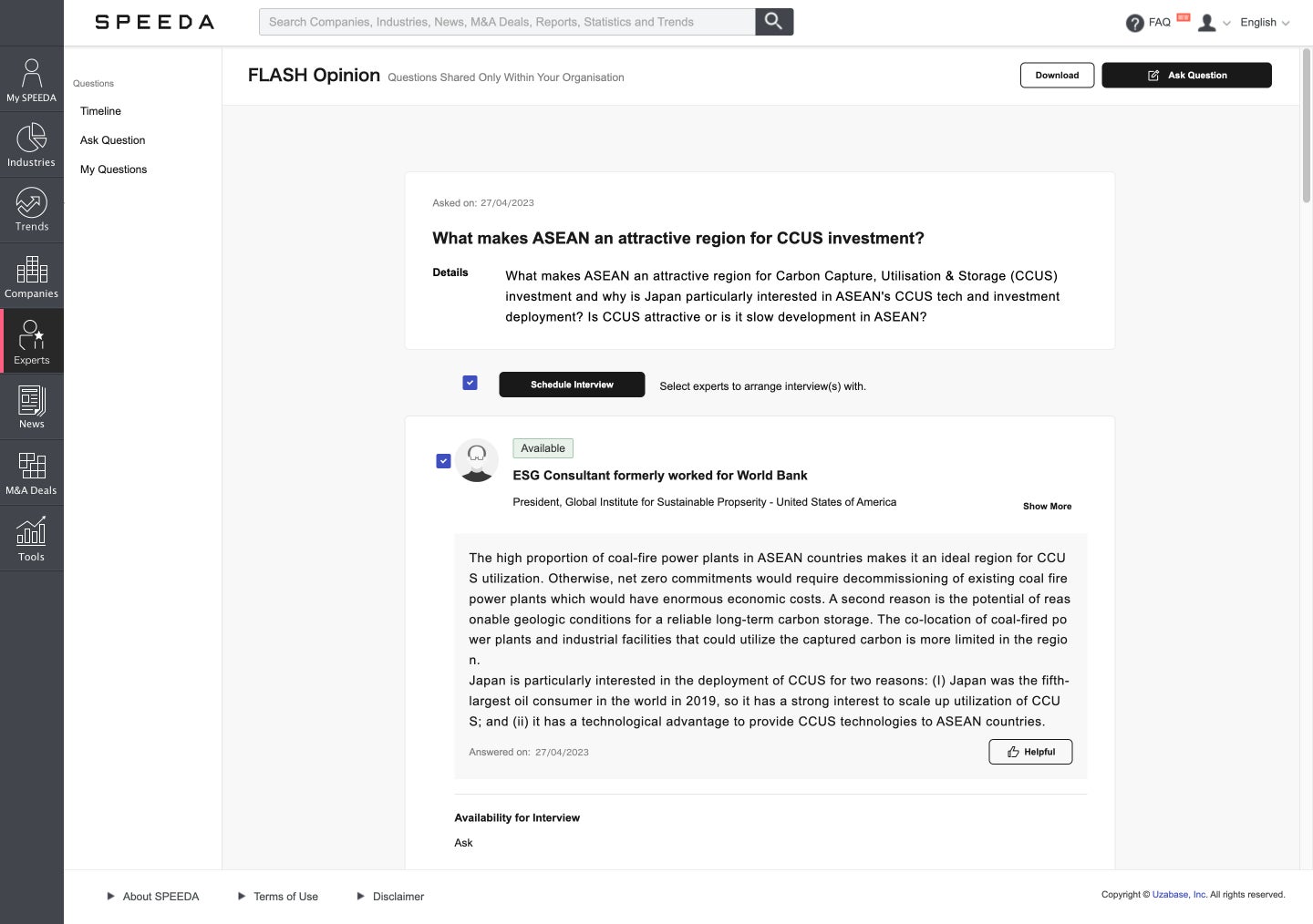 ・SPEEDAアナリストがトレンドや業界の「今」に関して定期的に専門家に質問。その回答をSPEEDAユーザーが閲覧可能なコンテンツとして掲載