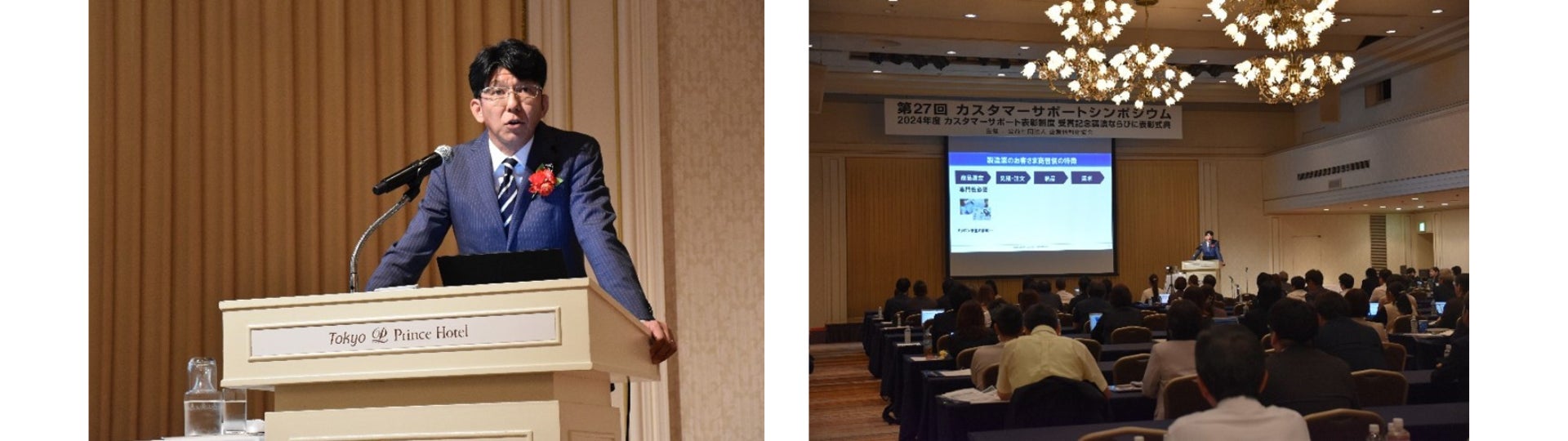 Hideka Shoji, Vice President of Japan Business Company, gave a presentation entitled "Balancing Customer Satisfaction and Cost Reduction through DX and Kaizen in Response to the Unique Business Practices and Requirements of the Manufacturing Industry" on the initiatives that led to MISUMI receiving the "Excellence Award" for the Best Customer Support of the Year 2024.
