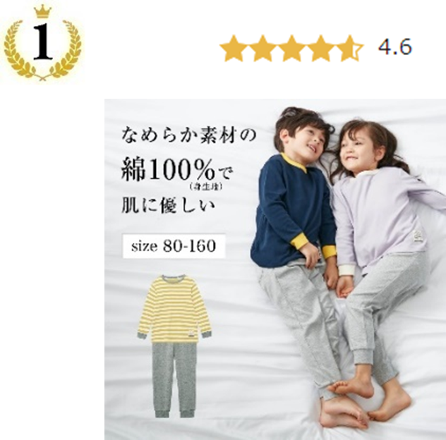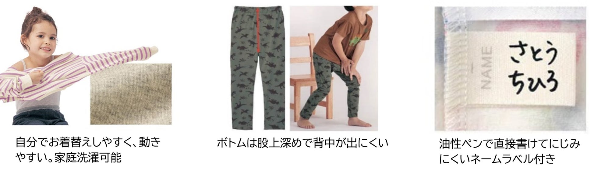 子どもは寝ている間もたくさん汗をかくので、綿100%素材が一番。ほどよい伸縮性で、お着替えしやすいので、保育園のお昼寝用にもおすすめです。