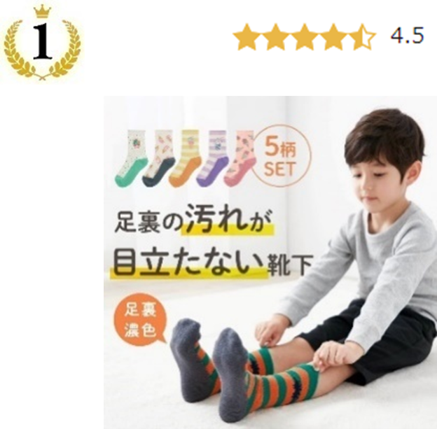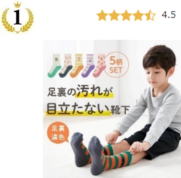 足底が濃色のデザインで、汚れが目立ちにくく、洗濯がちょっと楽になる靴下です。