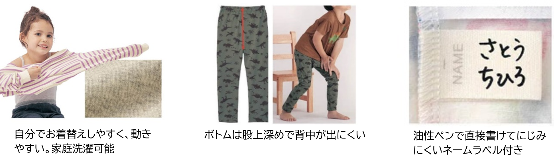 ストレッチ性と生地の厚みがちょうどよく、一人で着脱しやすい!