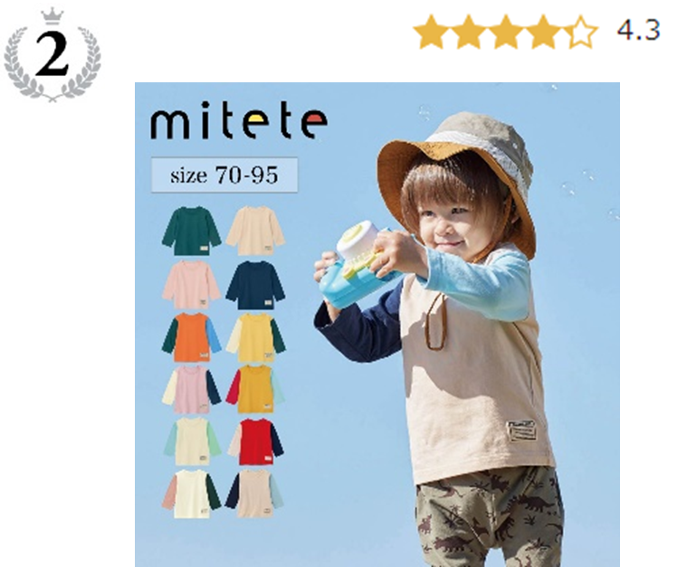 0歳入園におすすめの70cmから展開。肩ボタン開き&襟ぐりがよれにくい仕様がポイント。