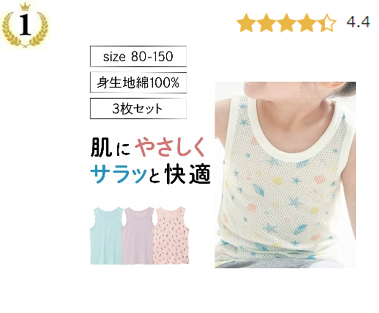 季節関係なく、子どもはよく汗をかくので、さらっと気持ちよい綿100%のメッシュ素材は、年中大活躍します。