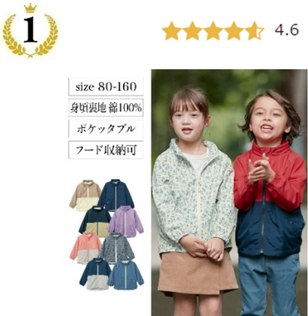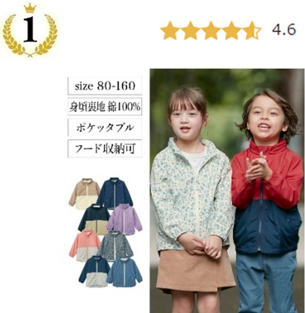 うれしいがギュッとつまったウィンドブレーカー 【身頃裏地綿100% ポケッタブル フード収納可】