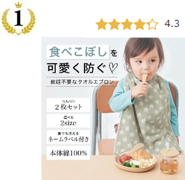 園から手作りでするように言われる方も多いと聞くタオルエプロン。ベルメゾンならあります!ふんわりかわいい色柄なのも人気のポイント。