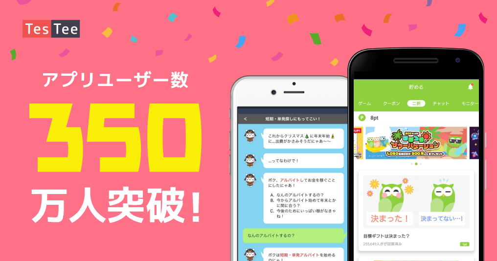 株式会社テスティー(本社:東京都渋谷区、代表取締役:横江優希、以下テスティー)は、チャットボットを活用した広告・ネットリサーチ事業を展開しています。この度、自社で開発・運営を行う「Powl(ポール)」のユーザー数(*1)が350万人を突破いたしました。それに伴い、Powlユーザー向けにキャンペーンを実施いたします。