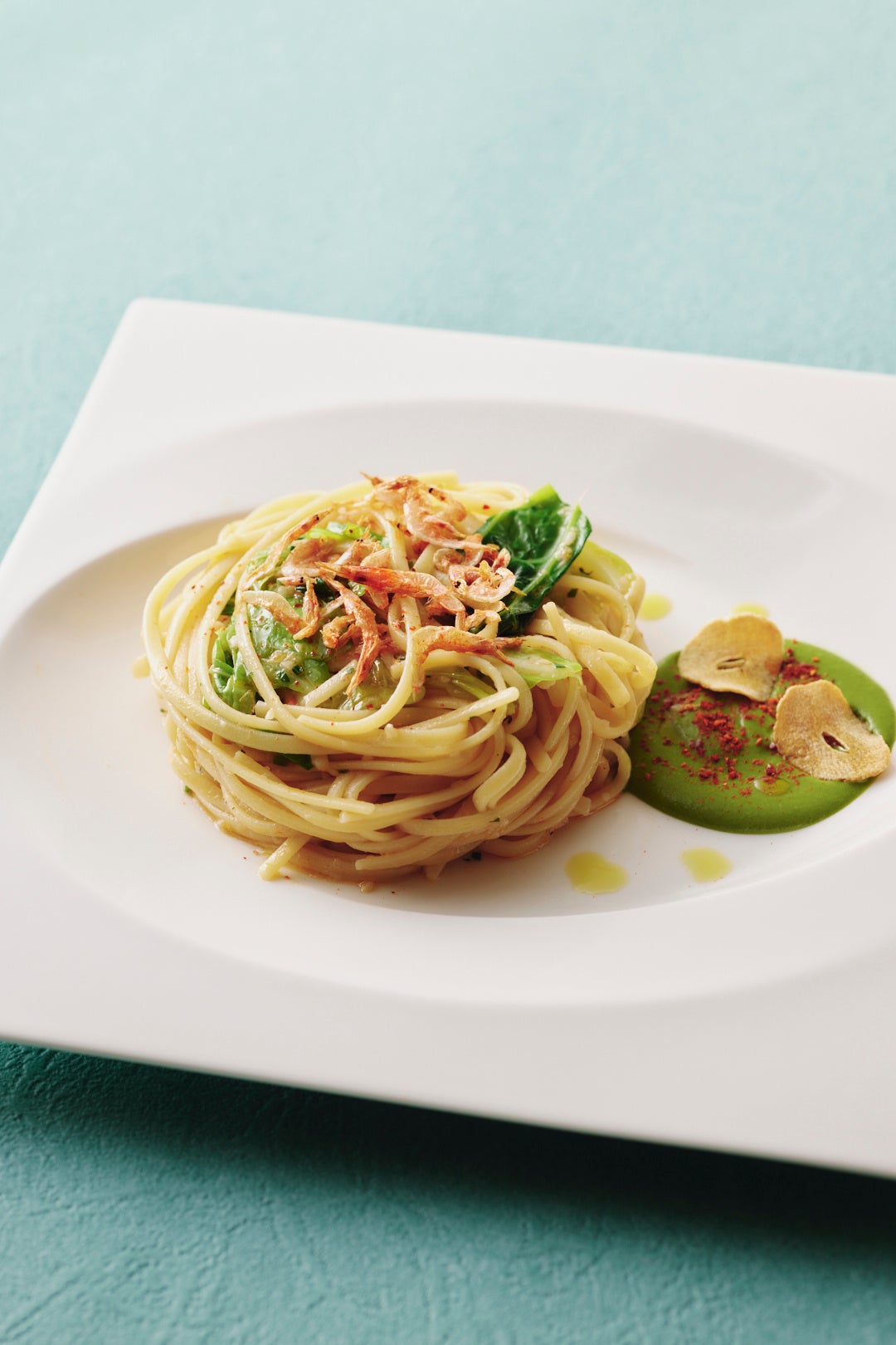 フレッシュパスタ ‘リングイネ‘ 桜海老と春キャベツのアーリオオーリオ