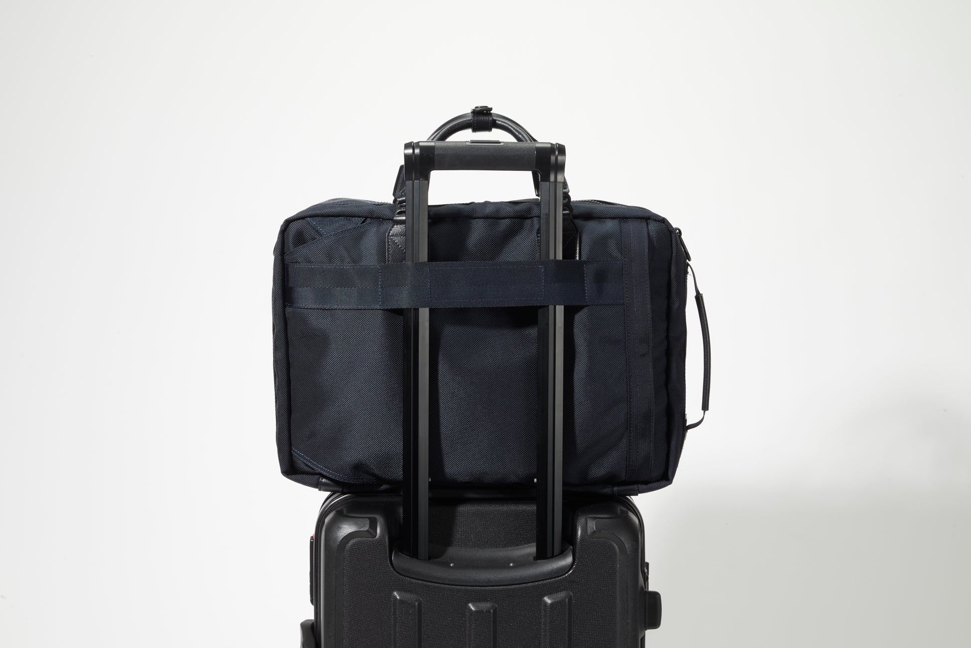 素材には、タイヤの芯材にも用いられる耐久性、耐摩耗性に優れた1680デニールナイロンと、防水加工を施したレザーを採用し、異素材のコンビネーションが際立つ仕上がりになっています。また、あえてBRIEFING伝統のレッドラインを使用せず、ワントーンに纏めているのも本コラボレーションの特徴で、ビジネスシーンでのコーディネートを邪魔することなくお使い頂けます。