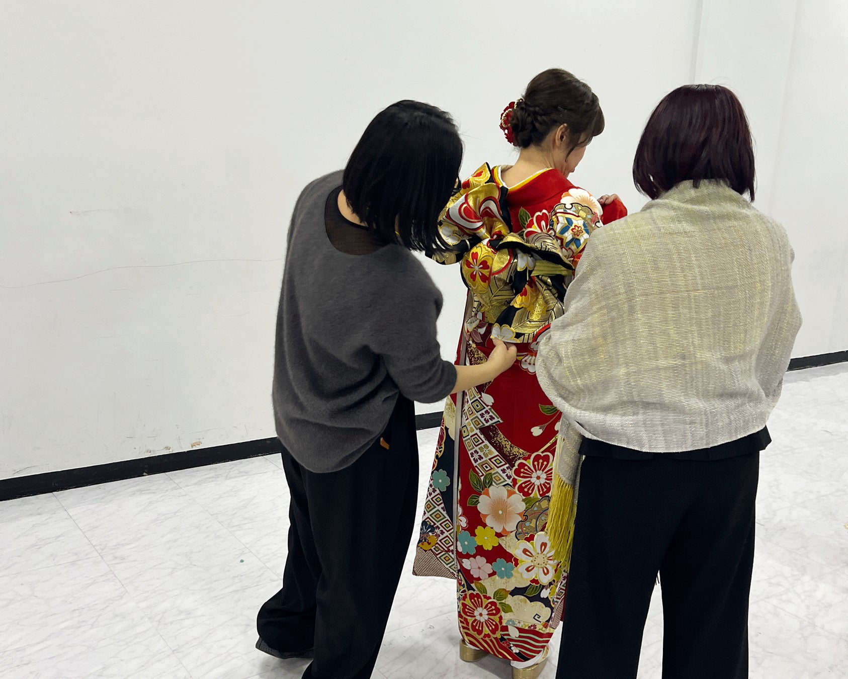 撮影会当日は、やまとのスタッフが着付けを担当し、「ハタチ記念撮影会」で得たノウハウを活かし、参加者が安心して体験できるよう撮影にも同行しました。