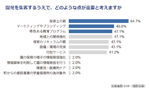 保育施設を運営する法人の8割が、今後の園児集客に課題。「保育士の質向上」に関する取り組みや情報発信を強化