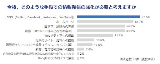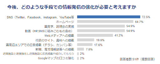 一方で、今後の情報発信の強化については、「ホームページ」を上回り、「SNS」での発信の強化が必要と考えているとの回答が最多となった。