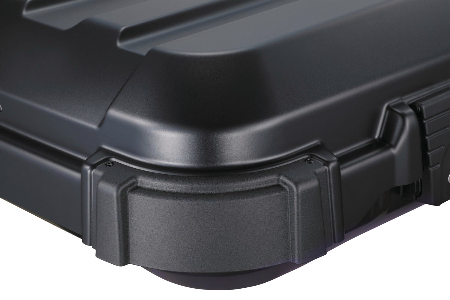 一般的な流線型ルーフボックスは、立てかけて保管することができません。本製品は、スクエア形状と四つ角にある傷防止バンパーにより、車に装着しない時には、横向き・縦向きどちらにも立てかけて保管することが可能です。バンパーは、傷が目立ちにくくなるよう粗いシボを採用したことで、デザインにもメリハリを効かせています。
