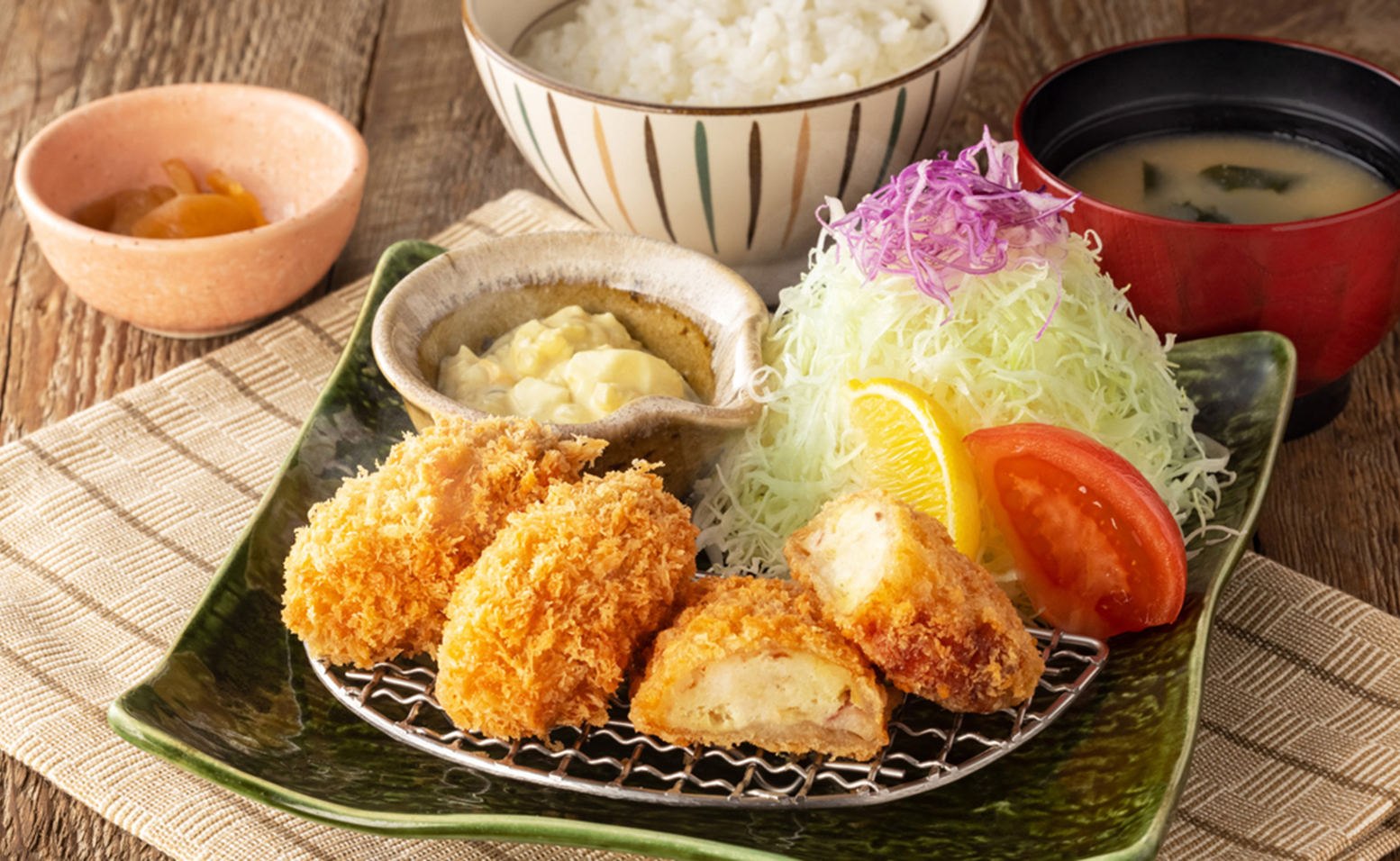 栄養たっぷりな海で育った広島県江田島産の大粒の牡蠣を、歯ざわりのいい衣でサクッとジューシーに揚げ、店内仕込みの特製タルタルソースはもちろん、さらに美味しくなった特製ソースを添えた自慢の一品です。