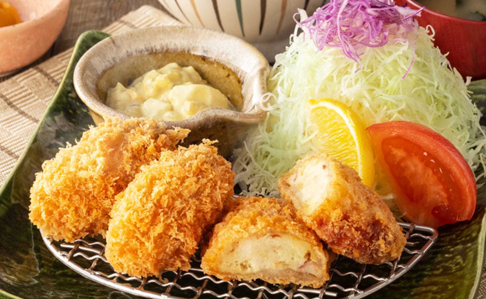 別添えの店内仕込みのタルタルソースも、さっぱりとした味わいで、あげたてジューシーな『牡蠣フライ』に良く合います。新食感の白子入りの真だらフライにはお好みでソースをつけてお召し上がりください。