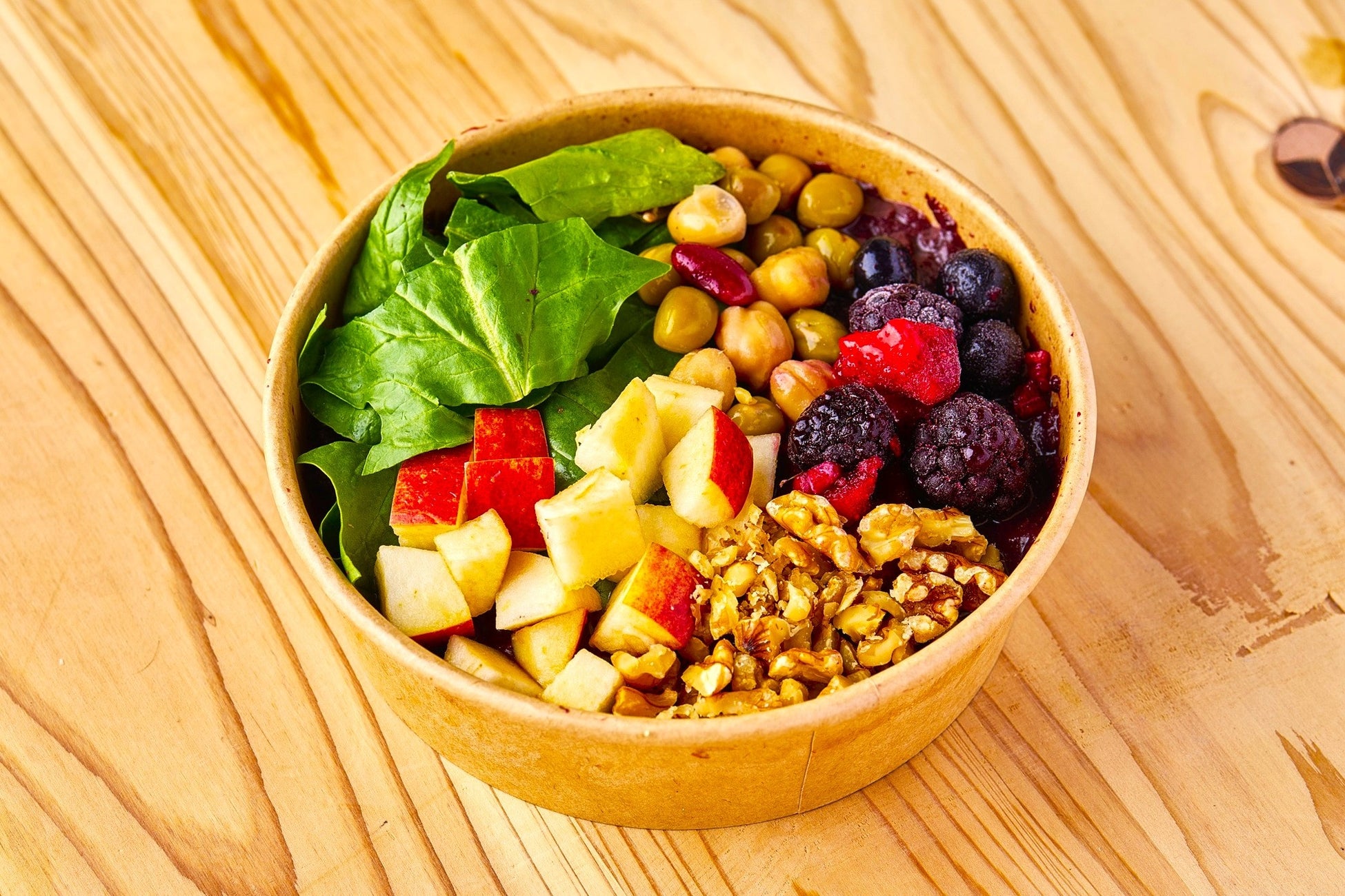 3種のベリーとビーンズ(豆)の食感が楽しい、新しい感覚のアサイーボウルです。オリジナルのピーナッツソースの香ばしさが果物の甘さを引き締め、飽きの来ない、食べ続けたくなる味わいに仕上げました。