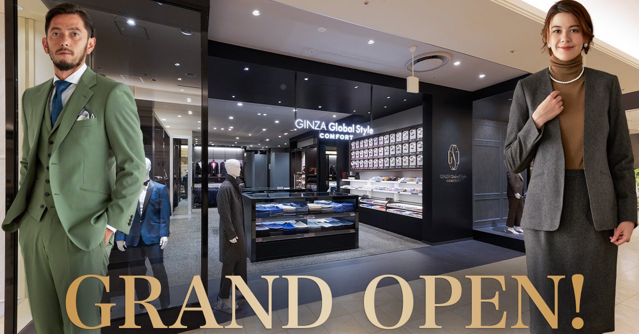 オーダースーツ専門店「GINZAグローバルスタイル」を運営するグローバルスタイル株式会社(東京証券取引所 スタンダード市場:7126、本社:大阪市中央区、代表取締役社長 田城弘志)は、11月10日(金)に「GINZAグローバルスタイル・コンフォート 立川髙島屋S.C.店」をグランドオープンいたしました。