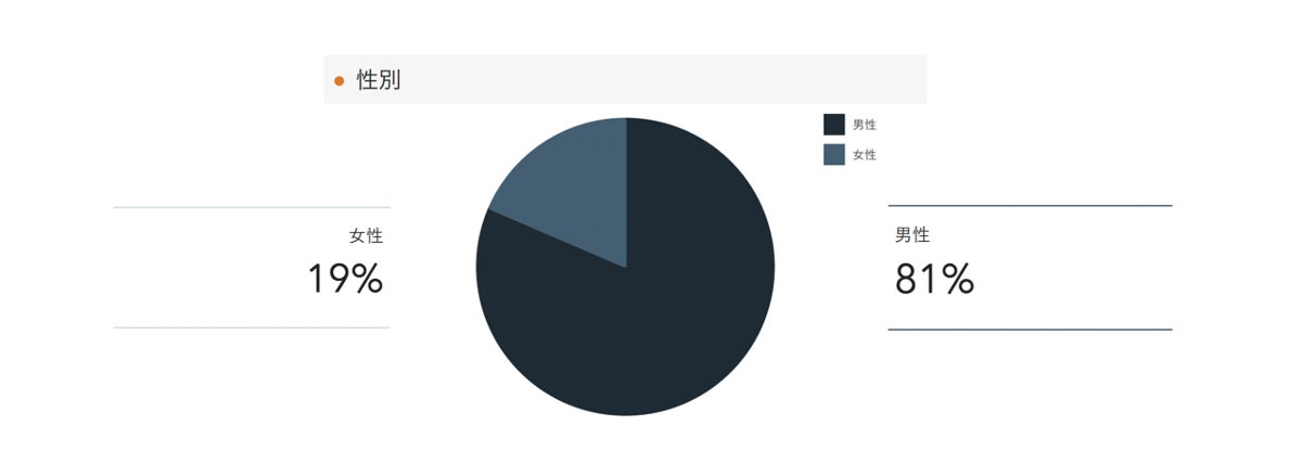 11月度成約顧客の性別は、男性が81%(前月比4ptダウン)、女性が19%となりました。女性の割合は、マンスリーレポート開始以来最も高い割合となっています。