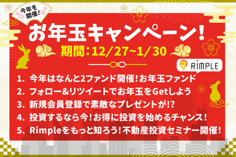 不動産投資型クラウドファンディング「Rimple(リンプル)」年末年始お年玉キャンペーンのお知らせ