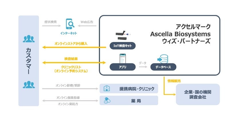 「Ascella Real Time System」は、自身の唾液や尿などを採取し、検査キットに差し込むことで、約6分で迅速に検査結果をスマートフォンアプリ等でセルフテストすることが可能です。セルフテストの結果、感染が疑われる場合には、スマートフォンアプリ等を通じて近隣のクリニックの紹介やオンライン診療・服薬指導に関する機会の提供など、自宅にいながら、セルフテストからクリニックを通じた診断、治療薬の処方までをワンストップで提供するプラットフォームの開発を予定しております。病院を受診する前に匿名性を維持したまま感染状況を確認することができ、感染拡大防止にも役立つものと考えております。