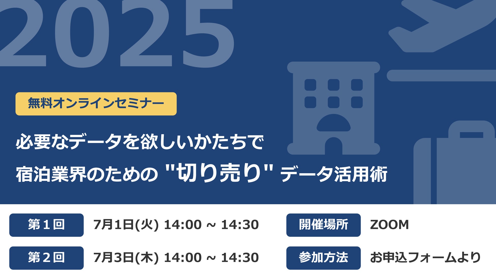 宿泊業界を中心にビッグデータとAIを活用したレベニューマネジメントツールを提供するメトロエンジン株式会社(本社:東京都品川区、代表取締役CEO:田中良介、以下メトロエンジン)は、2025年7月1日(火)および7月3日(木)※の2日程で無料オンラインセミナーを開催し、競合価格の把握や開業エリアの需要分析など、宿泊業界におけるデータ活用を支援する「データ販売サービス」の詳細や事例をご紹介いたします。