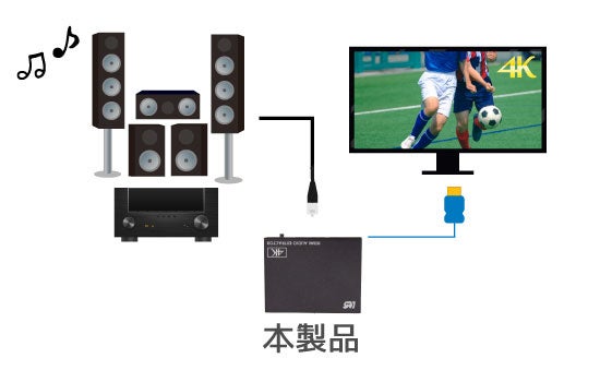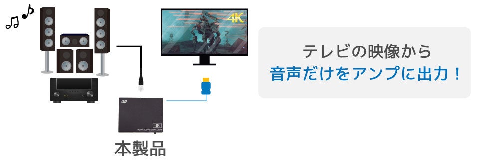 本製品は、HDMI信号を「映像」と「音声」に分離できるHDMI音声分離器です。