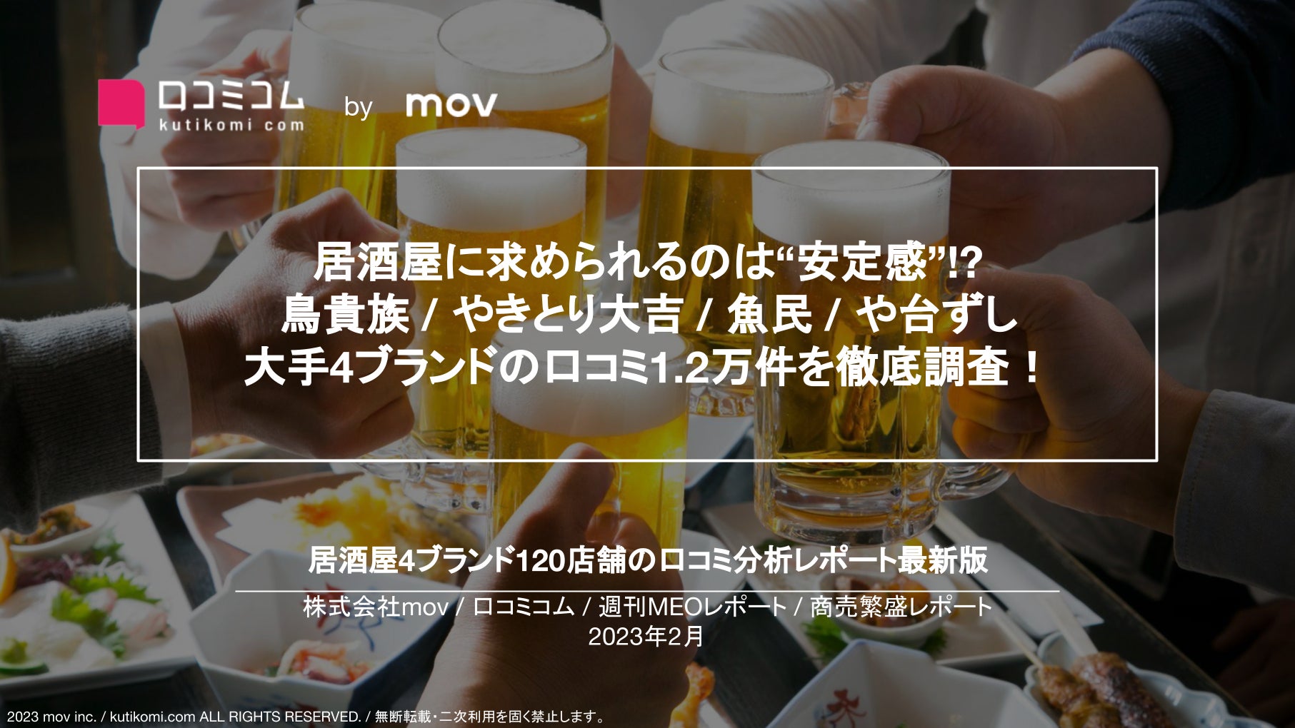 居酒屋4ブランドの口コミ分析レポートを口コミコムが公開