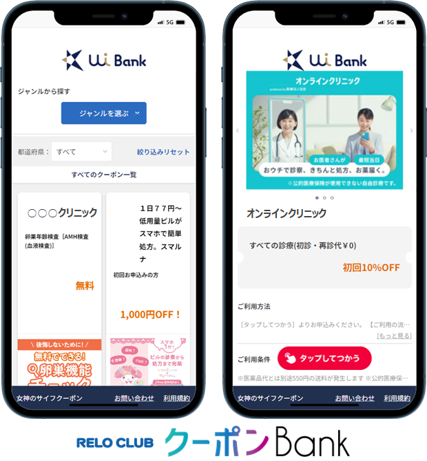 “クーポンBank”では、リロクラブが開拓したクーポンの中で、女性をサポートするフェムテック(Femtech)関連のクーポンを始め、エステなどの美容系コンテンツを中心にクーポンを提供いたします。