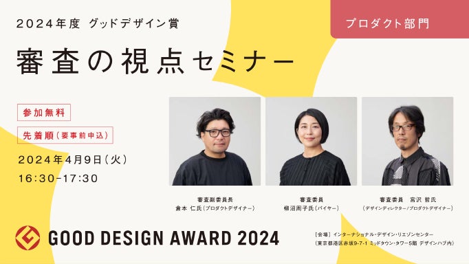 プロダクト部門では、弊社柳沼と、2024年度グッドデザイン賞審査副委員長でプロダクトデザイナーの倉本仁さん、同審査員でデザインディレクターの宮沢哲さんと、対談形式でのセミナーを予定しております。