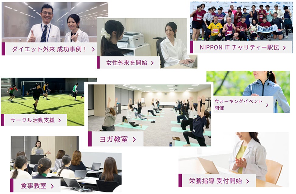 健康経営への取り組みとしては、「OBC社内診療所」と人事部門とが協力し各種イベントや施策を実施しており、創業時より継続している朝礼でのラジオ体操をはじめとして、直近では、定期的な食事セミナー・ヨガ教室・ウォーキングラリーの開催、「設置型社食」の導入、「OBC社内診療所」による禁煙外来・女性外来・ダイエット外来や栄養指導、サークル活動支援制度による健康で活力ある職場づくりなどを進めており、「OBC社内診療所」院長による各種セミナーや講演会への登壇による健康経営活動の啓発にも力を入れています。