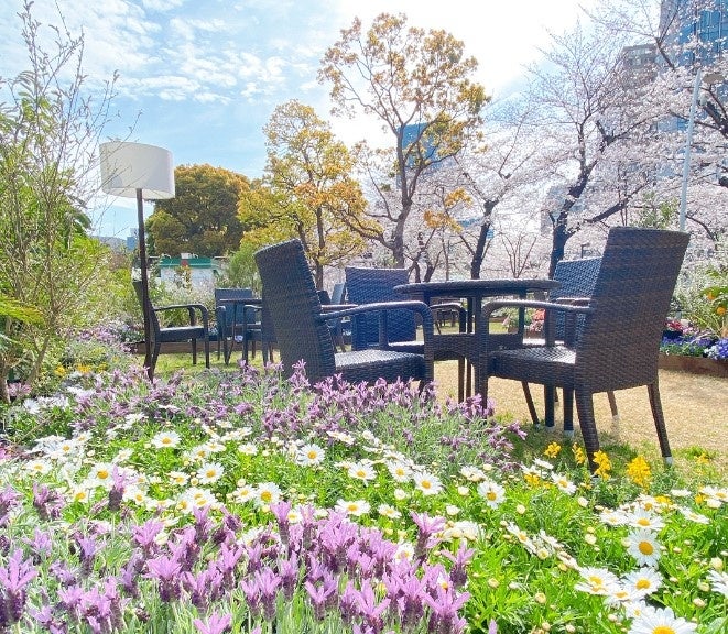 ~春の訪れを感じる屋外ラウンジには期間限定のフラワーショップも登場!~
