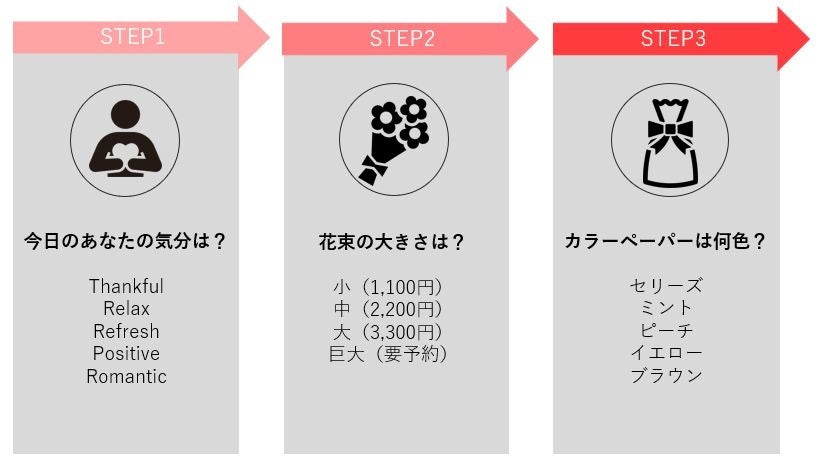 \100通りのブーケ/気分、大きさ、カラーペーパーの色合いに応じて手軽にブーケのセミオーダーが可能!