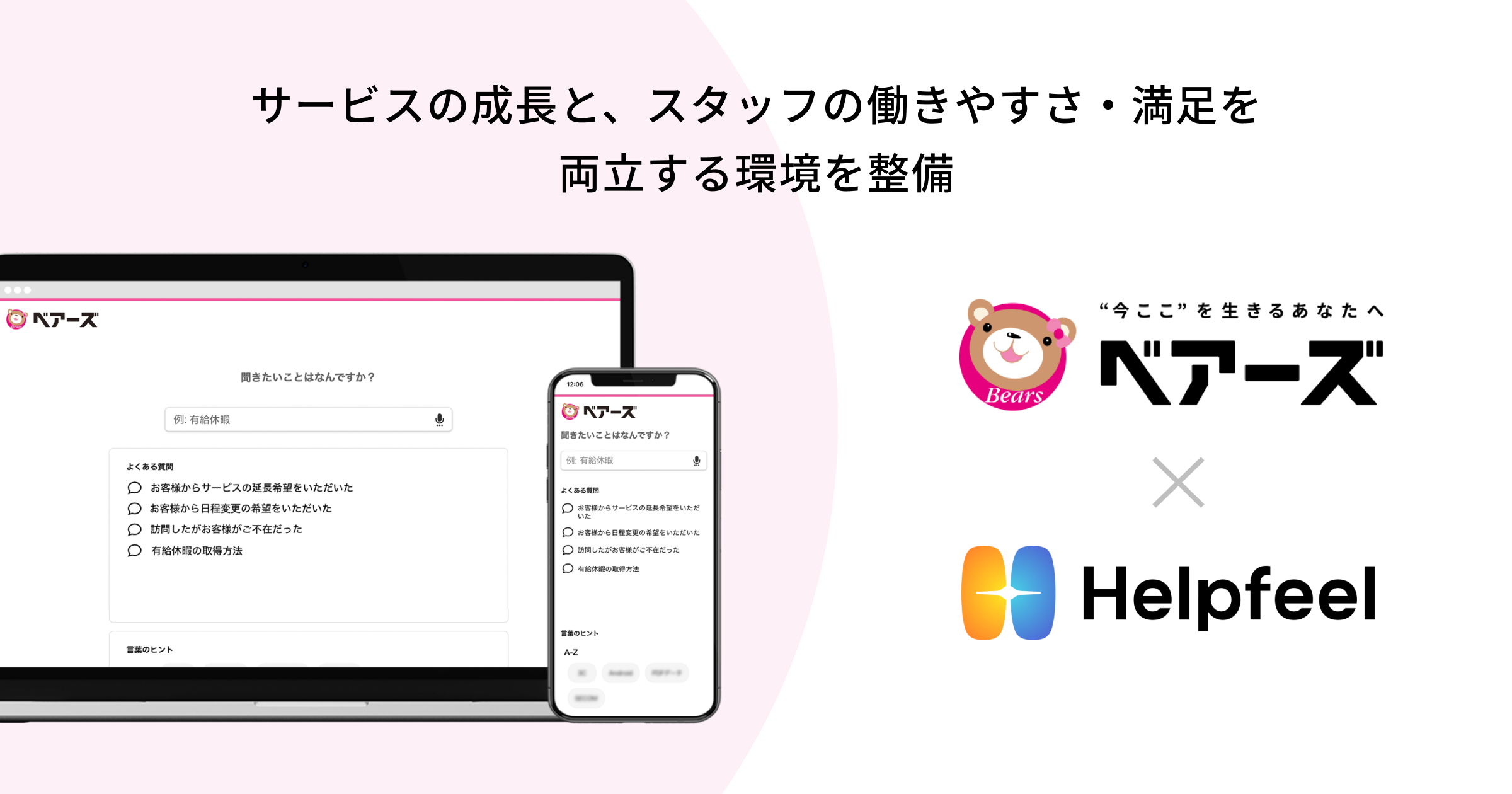 家事代行サービスの「ベアーズ」が、サービススタッフ「ベアーズレディ」向けに、検索型FAQ『Helpfeel』を導入!