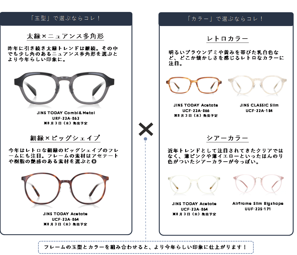 【商品名】JINS TODAY Acetate、JINS TODAY Combi&Metal