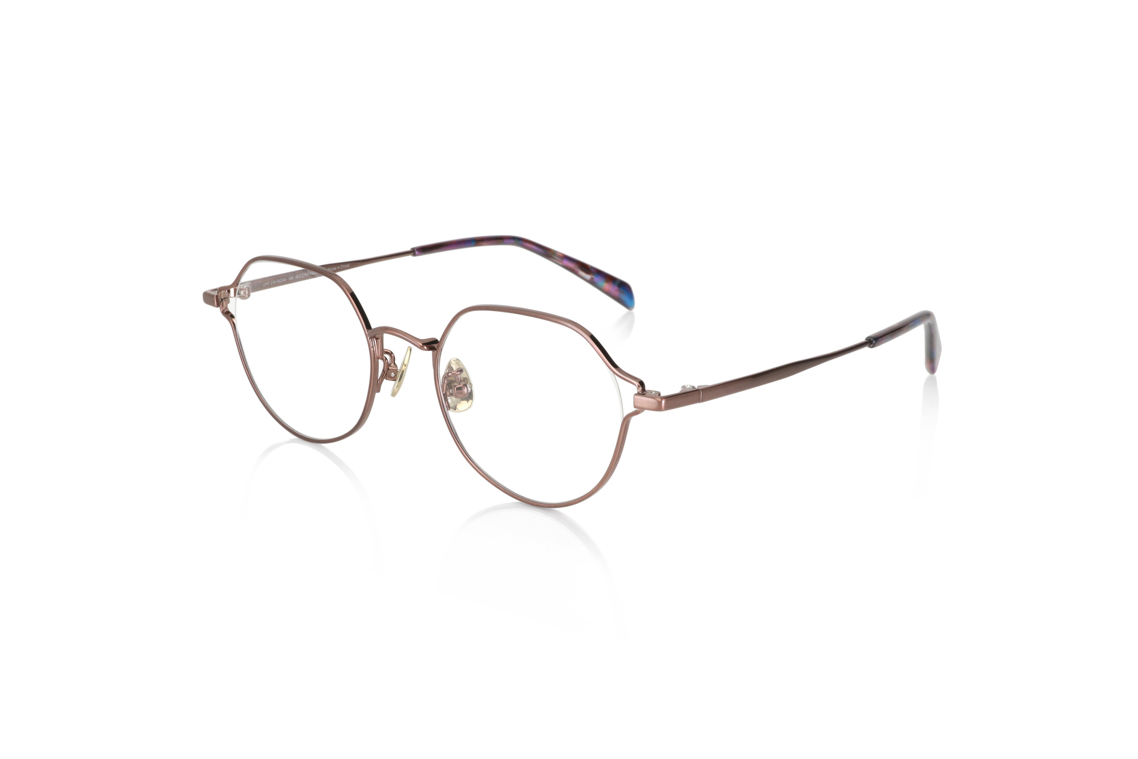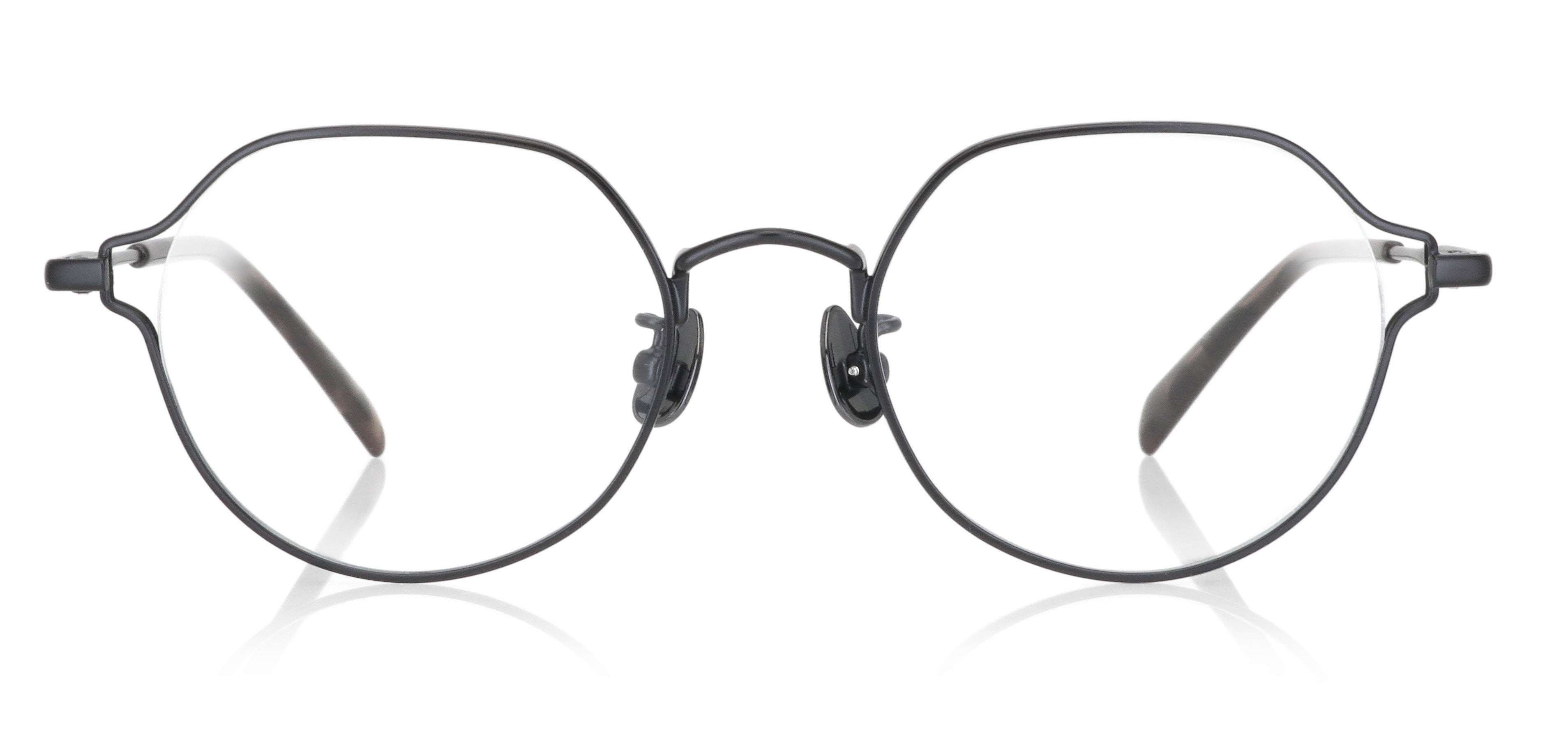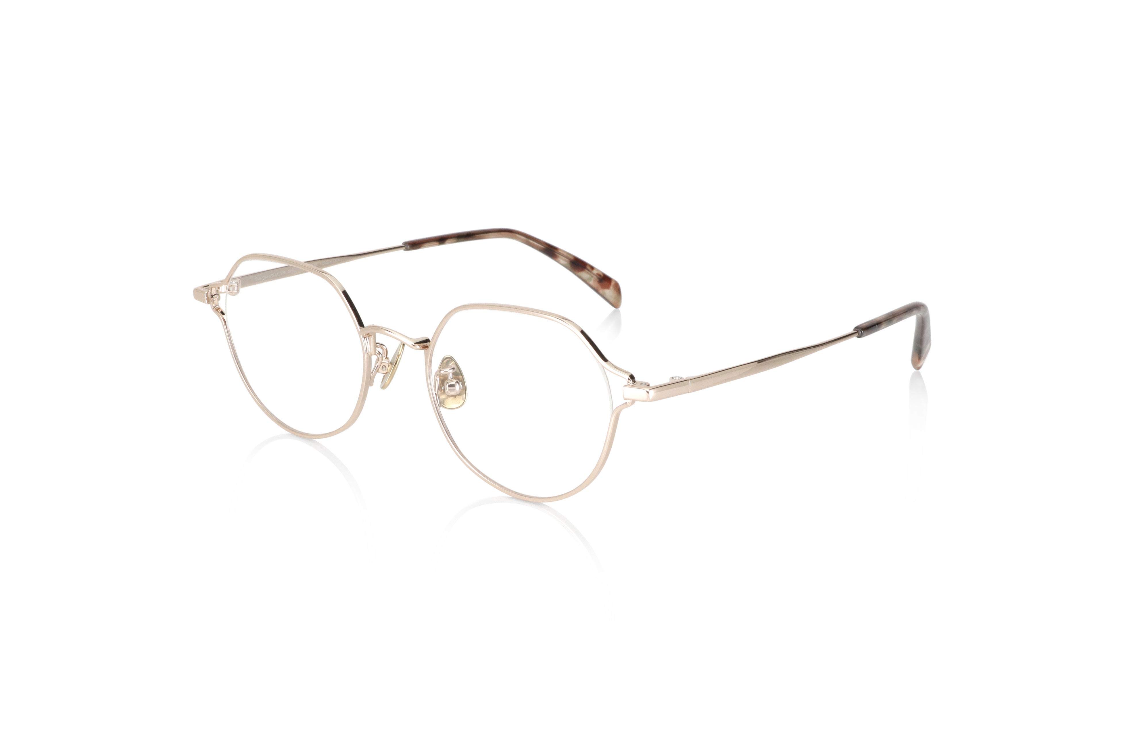 角をつけた甘さ控えめのデザインがポイントのメタルフレーム